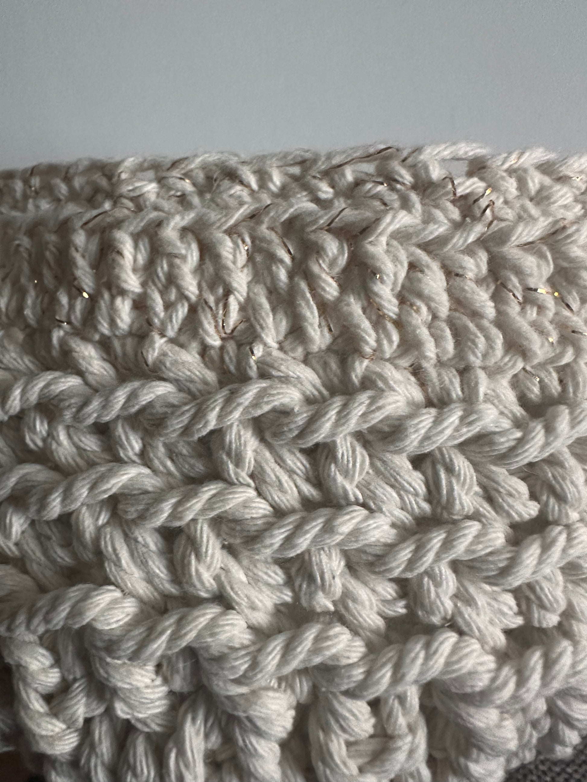 Yarn small organizer handmade with nature cotron and nature with gold on finishing upper part.